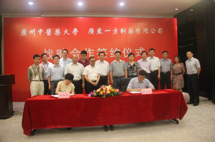 廣州中醫藥大學(xué)黃斌書(shū)記對此次與我司的戰略合作表示衷心的祝賀,肯定了一方制藥在中藥配方顆粒領(lǐng)域的領(lǐng)導者地位及成績(jì),并希望我司通過(guò)此次戰略合作,加強學(xué)校與企業(yè)在科技領(lǐng)域的創(chuàng )新升級,為中藥配方顆粒產(chǎn)業(yè)做出更多的與貢獻。我司譚登平董事長(cháng)代表公司感謝廣州中醫藥大學(xué)對我司的高度認可和肯定,并表示將通過(guò)產(chǎn)學(xué)研基地模式的建立,使學(xué)校和企業(yè)之間的平臺、優(yōu)勢緊密結合,共同推動(dòng)中藥配方顆粒及中醫藥領(lǐng)域的創(chuàng )新,實(shí)現雙方的互利共贏(yíng),為進(jìn)一步壯大和發(fā)展相應產(chǎn)業(yè)做出自己的貢獻。