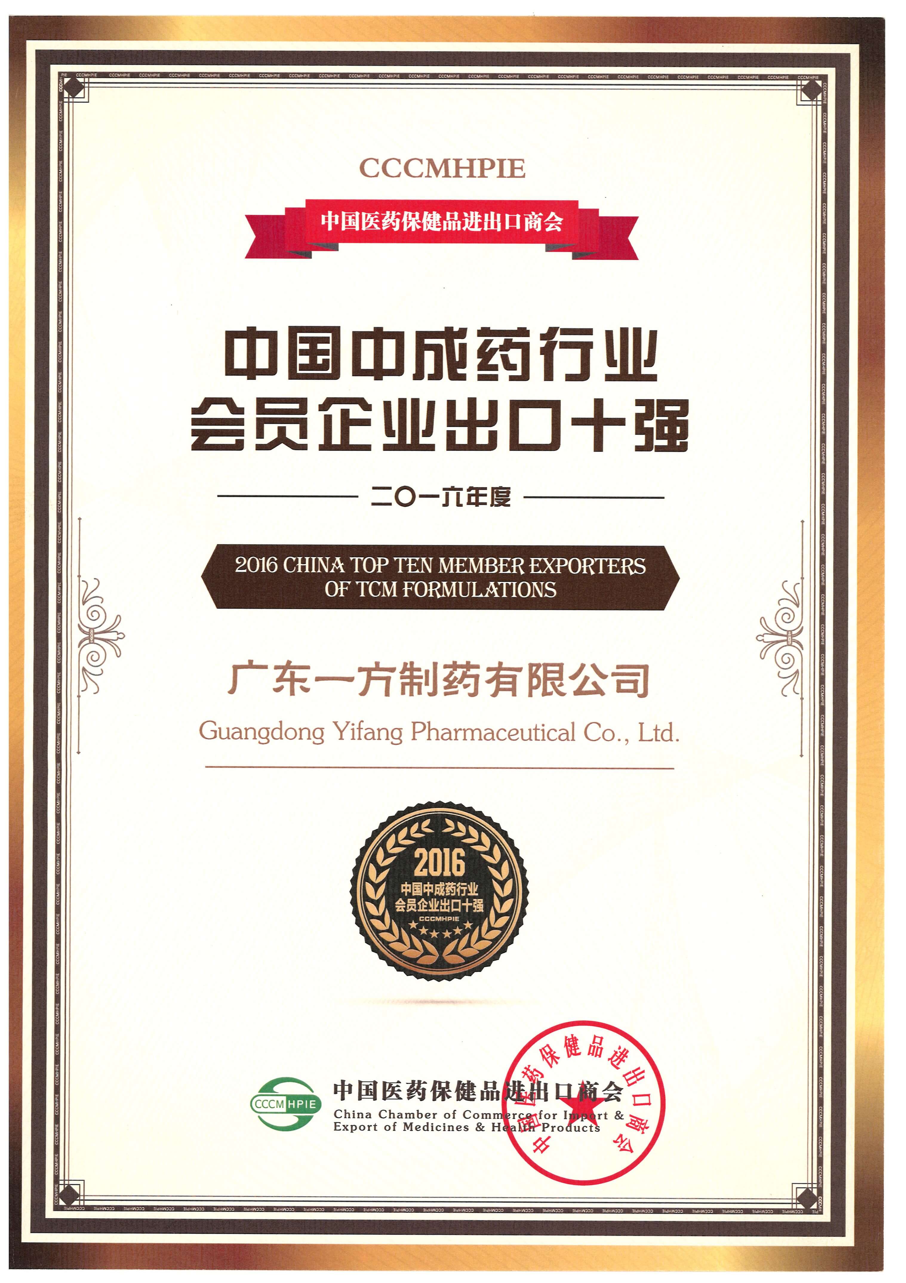 中國醫藥保健品進(jìn)出口商會(huì )六屆理事會(huì )暨六屆九次常務(wù)理事會(huì )于2017年3月16-17日召開(kāi),會(huì )議通報了2016年度工作報告及2017年工作安排,解讀了醫藥外貿行業(yè)形勢分析,并表彰了2016年度中國醫藥保健品進(jìn)出口行業(yè)優(yōu)秀企業(yè),廣東一方制藥有限公司憑借出口全球三十余個(gè)國家和地區,推動(dòng)中醫藥走出國門(mén)走向世界的優(yōu)異表現,被授予“2016年度中國中成藥行業(yè)會(huì )員企業(yè)出口十強”的稱(chēng)號。