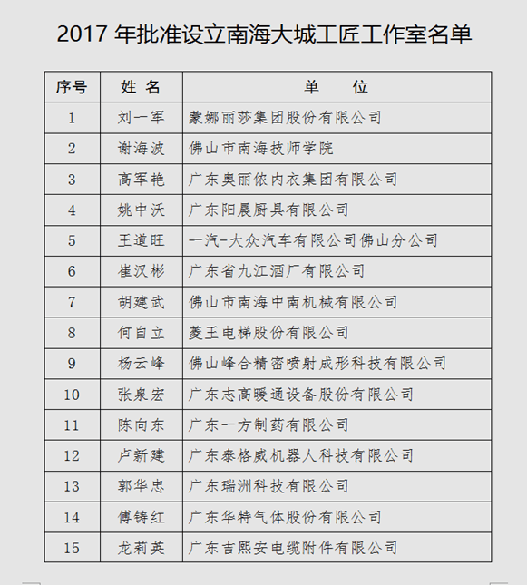 本次授牌的工作室所在的企業(yè)涵蓋了南海優(yōu)勢傳統制造業(yè)、戰略新興制造業(yè)和先進(jìn)裝備制造業(yè)三大領(lǐng)域,涉及汽車(chē)、機器人、生物醫藥、精密制造等多個(gè)行業(yè),其中不乏行業(yè)龍頭和細分領(lǐng)域的隱形冠軍。