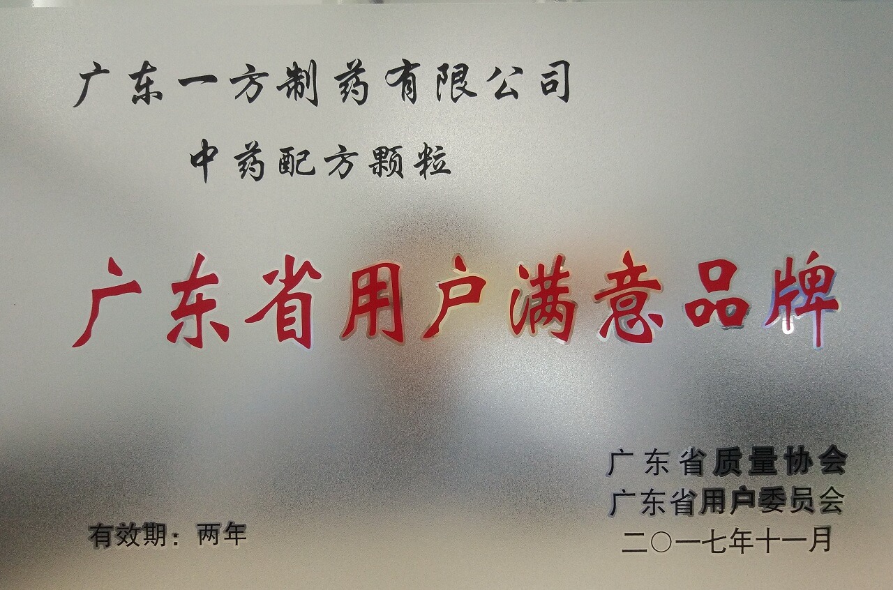 近日,廣東省質(zhì)量協(xié)會(huì )、廣東省用戶(hù)委員會(huì )展開(kāi)了廣東省用戶(hù)滿(mǎn)意企業(yè)、用戶(hù)滿(mǎn)意品牌等系列評選活動(dòng),經(jīng)過(guò)多方評選,最終廣東一方制藥有限公司被評為“廣東省用戶(hù)滿(mǎn)意企業(yè)”,廣東一方制藥有限公司“中藥配方顆?!北辉u為“廣東省用戶(hù)滿(mǎn)意品牌”。