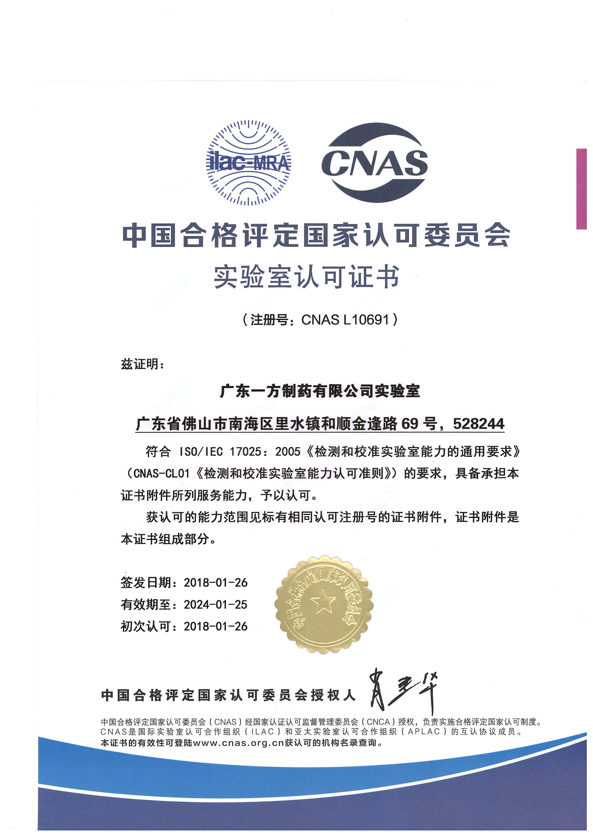 近日,一方制藥收到CNAS實(shí)驗室國家認可證書(shū)(注冊編號:CNAS L10691),一舉躋身國家認可實(shí)驗室的行列。
