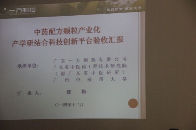 DYNAMIC INFORMATION2014年12月17日,由廣東一方制藥有限公司、廣東省中醫藥工程技術(shù)研究院和廣州中醫藥大學(xué)聯(lián)合承擔的2011年廣東省教育部科技部產(chǎn)學(xué)研結合項目“中藥配方顆粒產(chǎn)業(yè)化產(chǎn)學(xué)研結合科技創(chuàng )新平臺”項目順利通過(guò)廣東省科技廳組織的現場(chǎng)結題驗收。